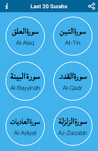 Appstore. 20 Surahs app is based on short length verses of Quran. To learn andmemorized quranic Surahs verse by verse play back audio is embedded in this